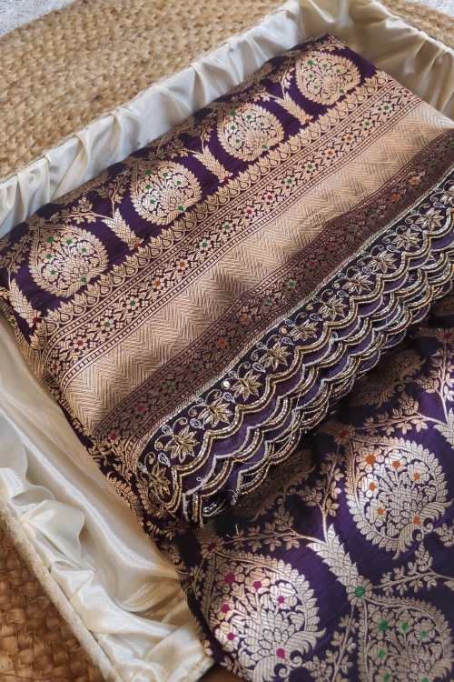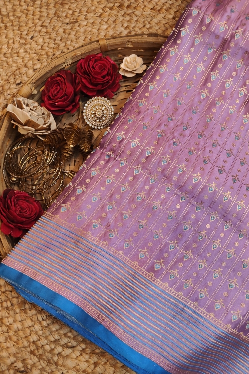 Handwoven Purple Meenakari Hand Embroidery Banarasi Silk Saree