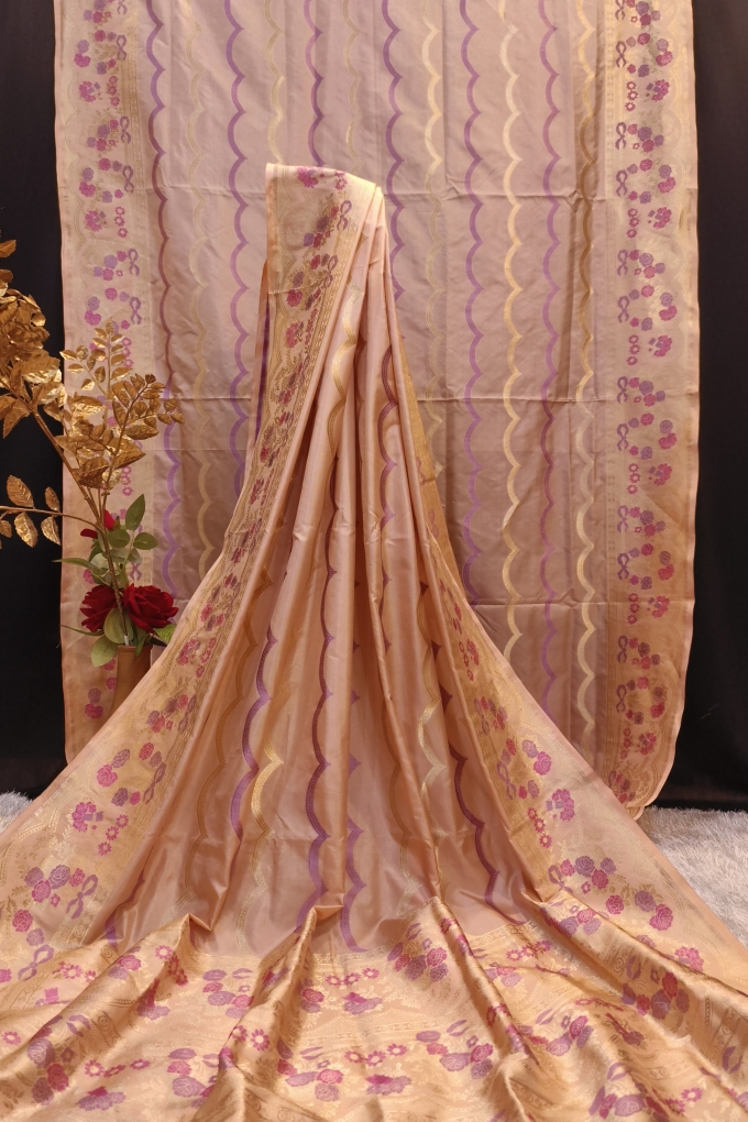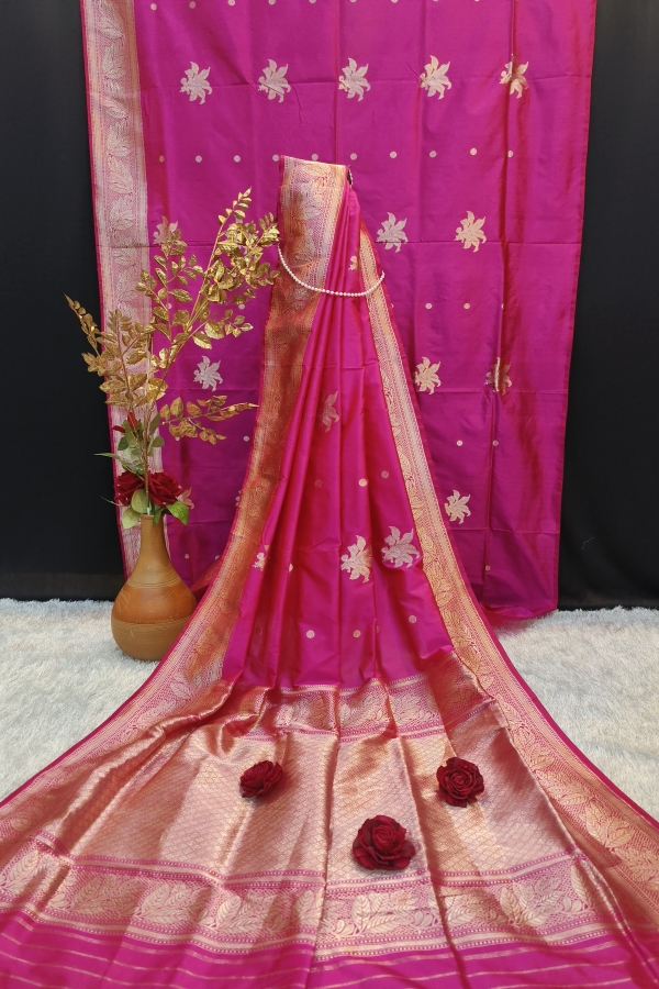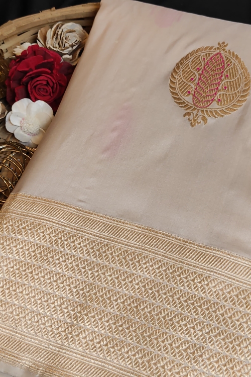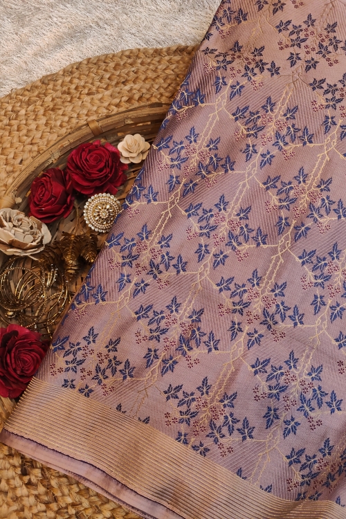 Handwoven Dusty Rose Satin Tanchui Banarasi Silk Saree