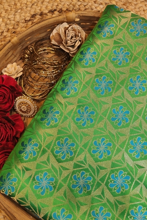 Handwoven Green Meenadar Jangla Banarasi Silk Saree
