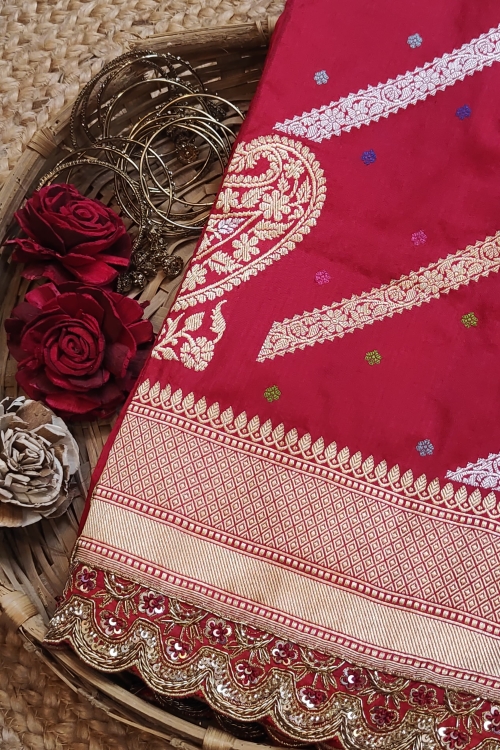 Handwoven Red Kadhua Hand Embroidery Banarasi Silk Saree