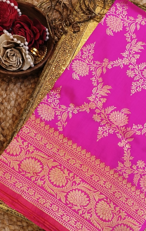 Discover the epitome of elegance and tradition with our exquisite collection of Banarasi Sarees. Renowned for their rich fabric, intricate designs, and luxurious appeal, Banarasi sarees are a timeless addition to any wardrobe. Each saree is meticulously crafted by skilled artisans,