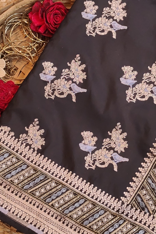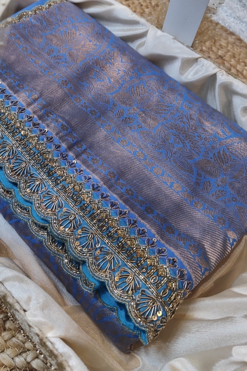 Handwoven Powder Blue Hand Embroidery Banarasi Silk Brocade Saree