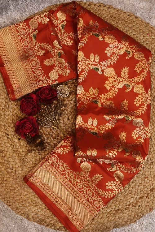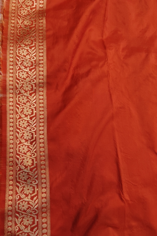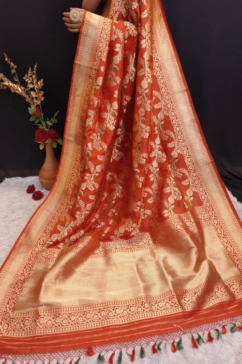 Handwoven Orange Meenedar Jangla Banarasi Silk Saree