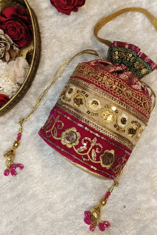 • Craft: Handcrafted silk potli bag.