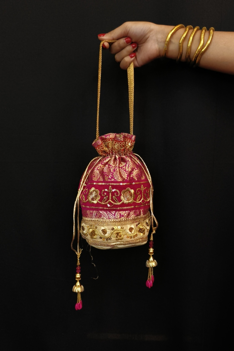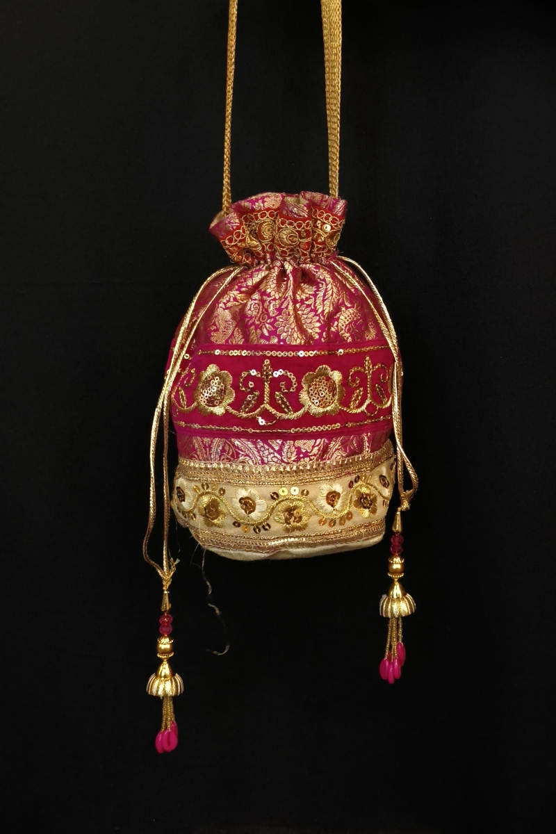 • Craft: Handcrafted silk potli bag.