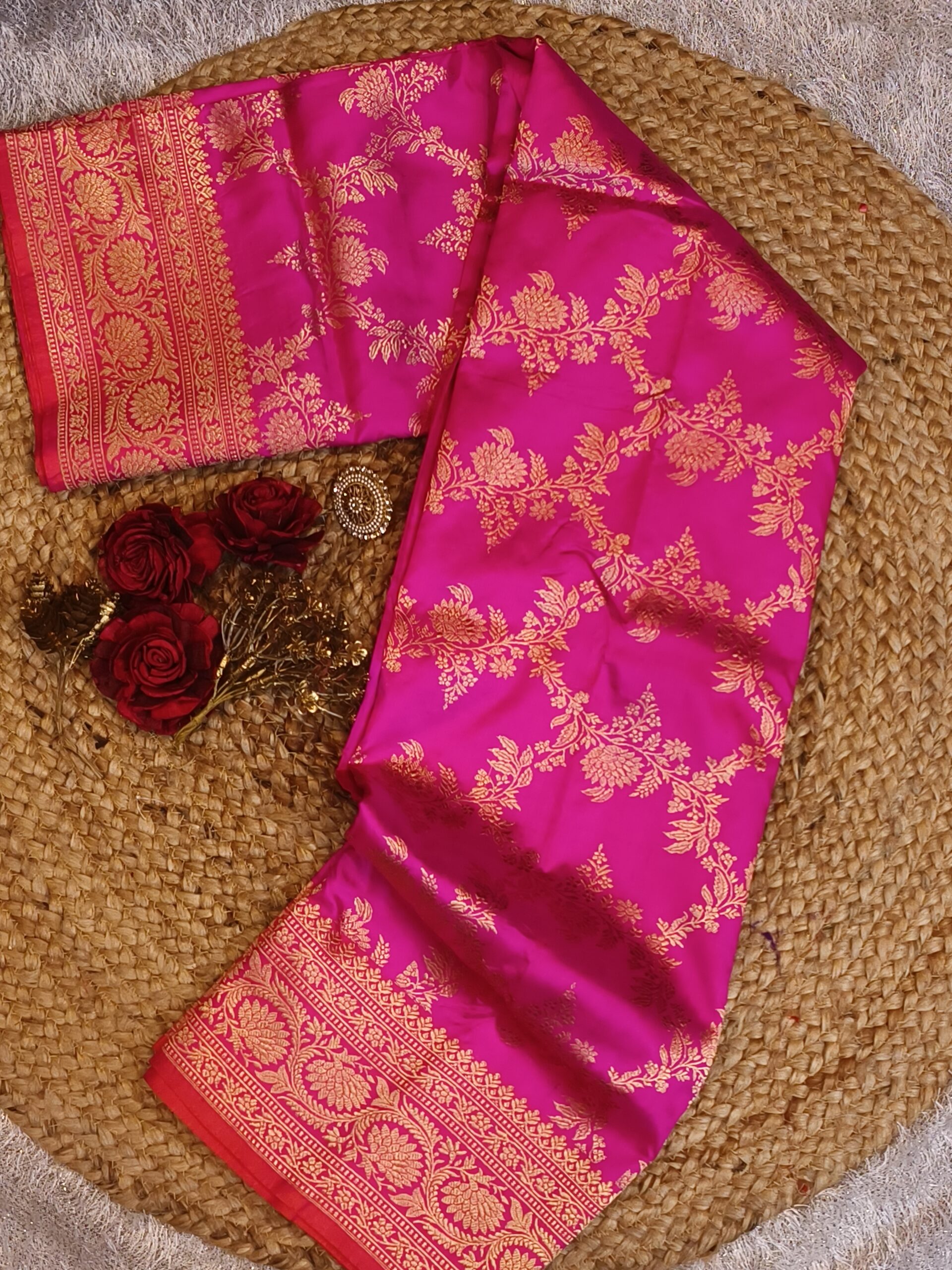 Handwoven Pink Jangla Banarasi Silk Saree